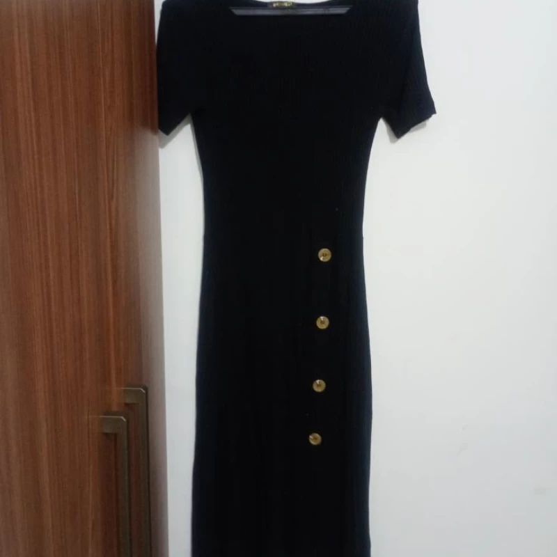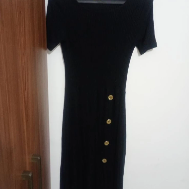 Um lindo vestido longo preto, modelo todo fechado, com botões na parte da frente que dão um charme especial e elegante à peça. Um vestido super estiloso, confortável e versátil, perfeito para sair, trabalhar ou até para ocasiões especiais.
